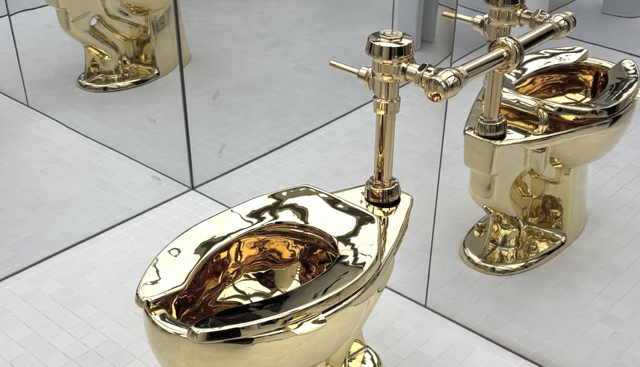 E dunque, a parità di valore del materiale impiegato, la banana (vera) appesa al muro con lo scotch intonata “Comedian” ha fatto molto di più essendo stata aggiudicata per oltre 6 milioni di dollari. Per la cronaca il water, che era di proprietà di un collezionista anonimo, era uno dei due creati da Cattelan nel 2016. L’altro, che è stato rubato, era stato esposto lo stesso anno al Guggenheim Museum di New York, che si era offerto di prestarlo al presidente degli Stati Uniti Donald Trump quando quest'ultimo gli aveva chiesto in prestito un dipinto di Van Gogh.