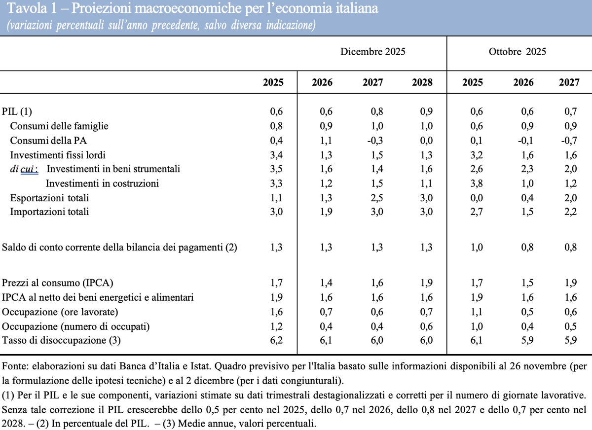 Le proiezioni macroeconomiche di Banca d'Italia per il quadriennio 2025-28