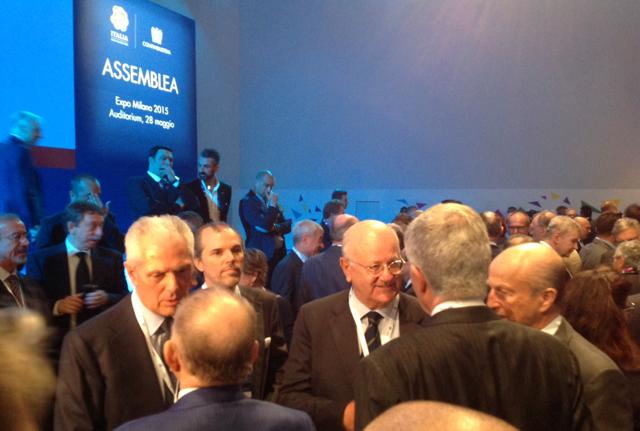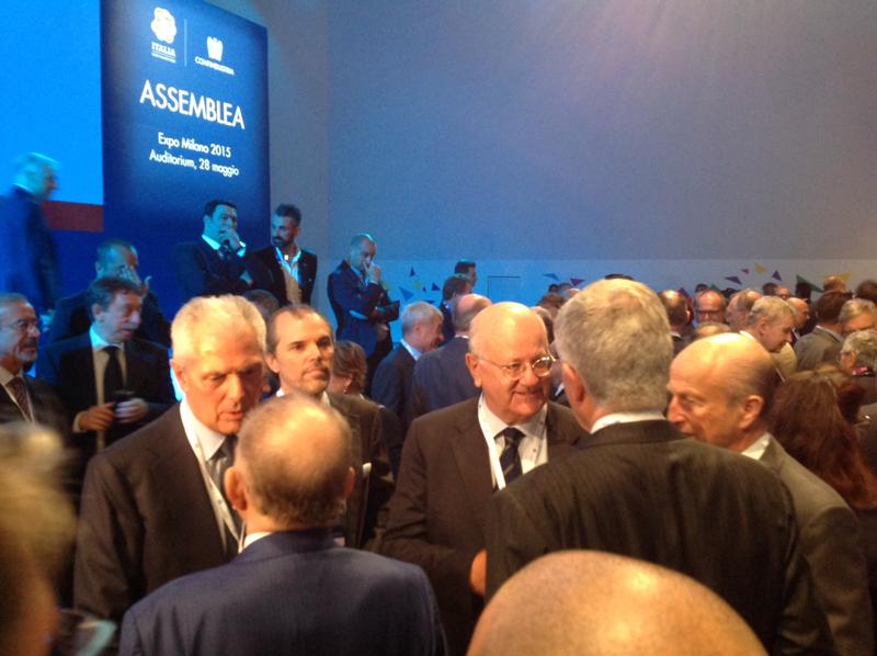 Un ringraziamento a Diana Bracco per l'impegno profuso nel realizzare l'Expo, appuntamento che "ci dà fiducia e, come il Giubileo, ci consentirà di mantenere gli occhi del mondo addosso". Il presidente della Confindustria Giorgio Squinzi esordisce così nel suo ultimo intervento da numero uno dell'associazione di Viale dell'Astronomia, assemblea che quest'anno si tiene a Milano (per sottolineare l'importanza dell'esposizione a Rho) e non a Roma.