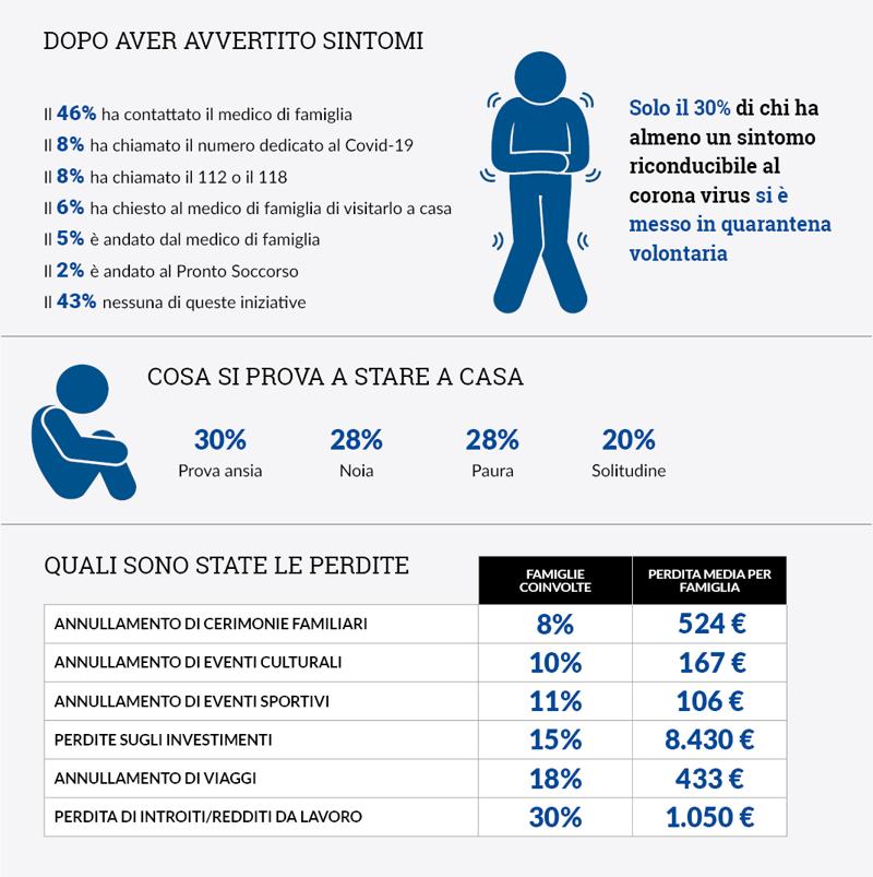 Tra i risultati principali emerge che la maggior parte dei cittadini ha recepito le regole, ma c'è ancora chi le segue solo parzialmente e che anche in presenza di sintomi riconducibili a un'infezione da coronavirus, nel 43% dei casi si sceglie di non informare il medico o i numeri di assistenza.