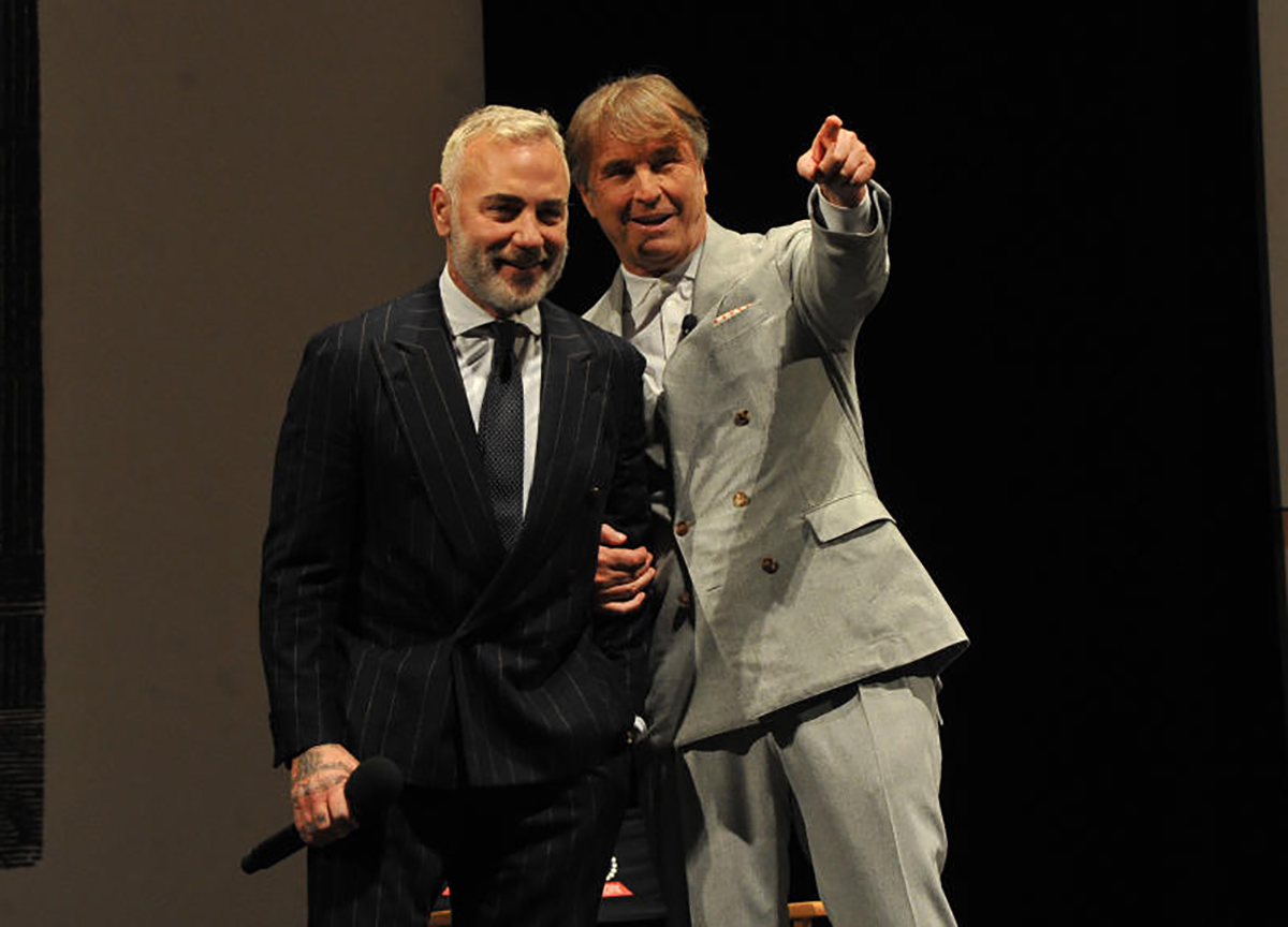 A coadiuvarlo sul palco il compagno d’infanzia e di sempre Massimo Massimi, il suo Aristotele, e un grande busto di Adriano imperatore, ma anche il presidente della CEI, arcivescovo di Perugia e amico personale cardinale Gualtiero Bassetti e l’imprenditore Gianluca Vacchi, suo grande consigliere finanziario nell’operazione di quotazione in borsa (all’incontro per la nascita della “nuova Alessandria”, il rettore dell’Università degli Studi Maurizio Oliviero, il sindaco di Corciano Cristian Betti e quello di Magione Giacomo Chiodini. Nei suoi saluti iniziali Cucinelli ha ringraziato i giornalisti per il loro impegno e “gli amici di Solomeo e quelli della Silicon Valley per la loro presenza”).