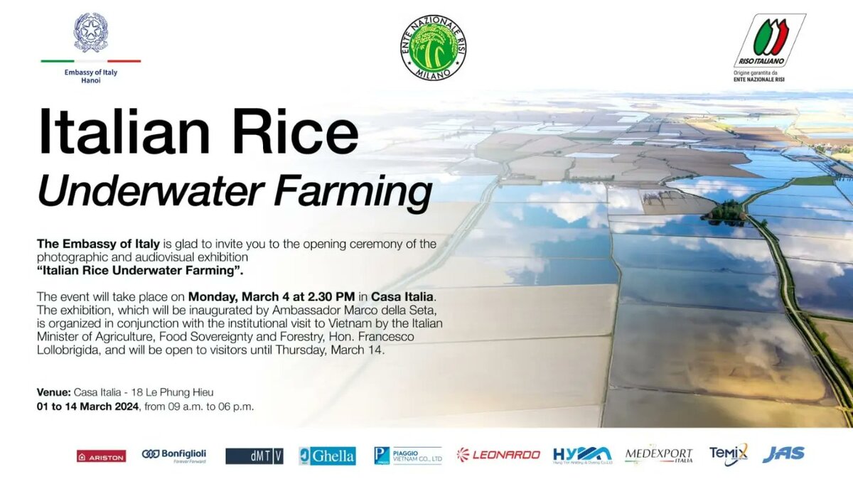 La rassegna fotografica, realizzata con foto di archivio dell’Ente Nazionale Risi, ente vigilato dal Masaf, nasce su richiesta dell’ambasciata italiana in Vietnam per raccontare la particolarità della risicoltura italiana, estremamente differente per sistema di coltivazione e tipologia rispetto a quella locale.