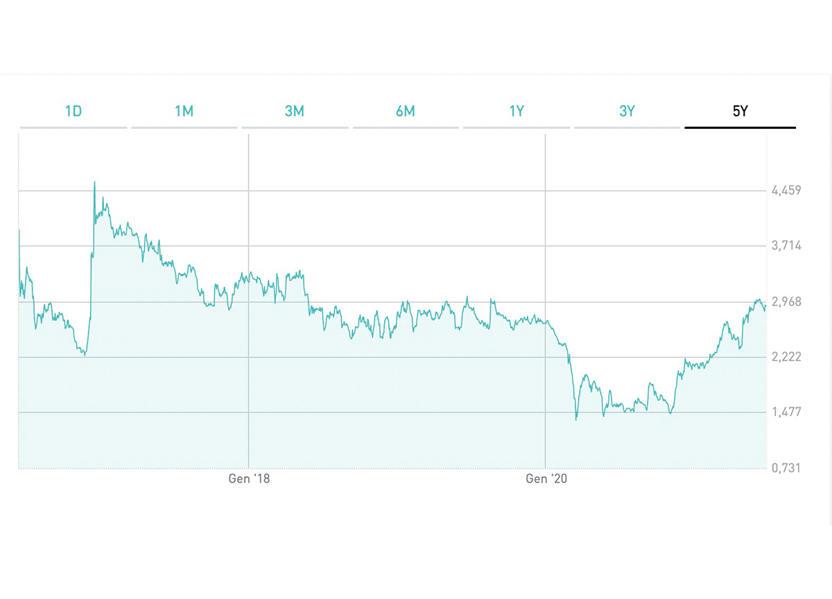 L’andamento del titolo Mediaset negli ultimi 5 anni (fonte Borsa Italiana)