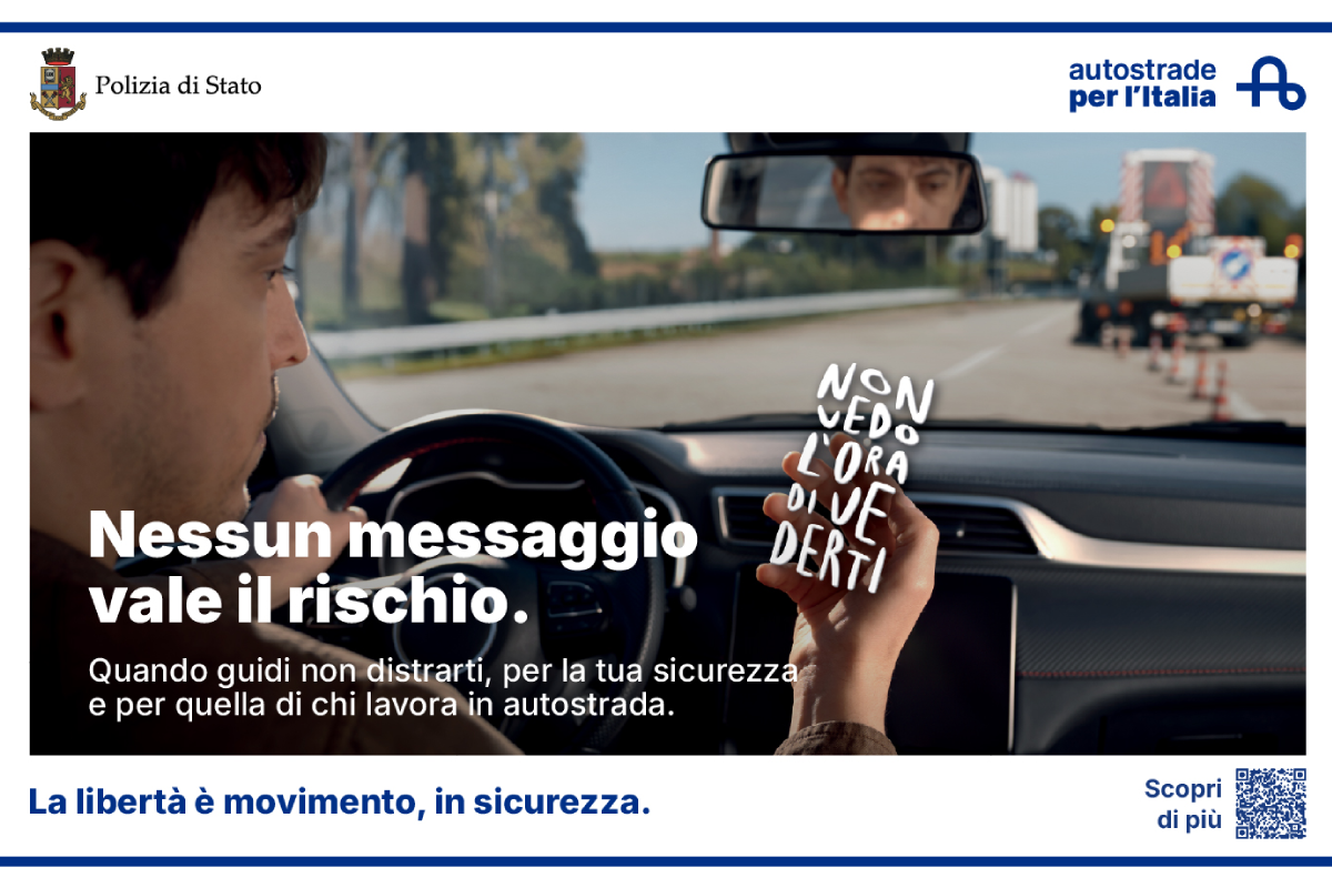 Inoltre, in questi giorni, Autostrade per l’Italia e Polizia Stradale hanno lanciato la nuova campagna “Guida senza rischi”, che sarà on-air fino al 25 dicembre. Un’iniziativa che mette in evidenza il nesso diretto tra alcune abitudini scorrette e l’aumento del rischio alla guida. Ogni comportamento, non allacciare la cintura, usare lo smartphone durante la marcia, superare i limiti di velocità, è affiancato al rischio concreto che ne deriva, rendendo evidente come una scelta apparentemente minima possa incidere sulla sicurezza degli utenti e dei lavoratori presenti lungo la rete.