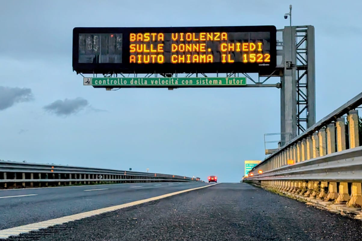 In occasione della Giornata internazionale per l’eliminazione della violenza sulle donne, il Gruppo Autostrade per l’Italia rinnova il proprio impegno con una campagna di sensibilizzazione rivolta agli utenti che percorrono la rete. Fino al 30 novembre, sui Pannelli a Messaggio Variabile (PMV) presenti lungo i 3.000 km di rete gestita dal Gruppo, saranno visibili i messaggi: “Basta violenza sulle donne” e “Stop a ogni forma di violenza”.
