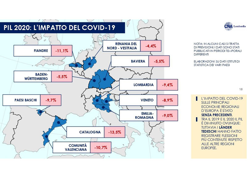 Secco anche il commento del segretario regionale Stefano Binda: “Se collochiamo la Lombardia dentro il quadro delle maggiori regioni europee, vediamo che perde il 9,4 per cento di Pil contro un calo intorno al 5% di Baviera, Baden Wurttemberg e Renania Nord - Vestfalia. Se dilatiamo lo sguardo lungo l’asse cronologico degli ultimi 10 anni, vediamo che le tre Regioni tedesche citate sono cresciute tutte tra il +12% e il +21%, la nostra Lombardia del 3,6%. C’è senza dubbio un tema di redistribuzione della catena del valore nell’economia globale, ma siamo convinti che a tale redistribuzione il sistema delle autonomie territoriali tedesche abbia saputo e potuto rispondere meglio sotto il profilo dell’organizzazione dell’istruzione, della fiscalità, degli stimoli economici al tessuto produttivo. La Lombardia ha bisogno di stare al passo dell’Europa continentale. Questo obiettivo definisce uno sforzo di volontà e di intelligenza ma anche l’esigenza di una maggiore autonomia su alcune materie per farlo.”
