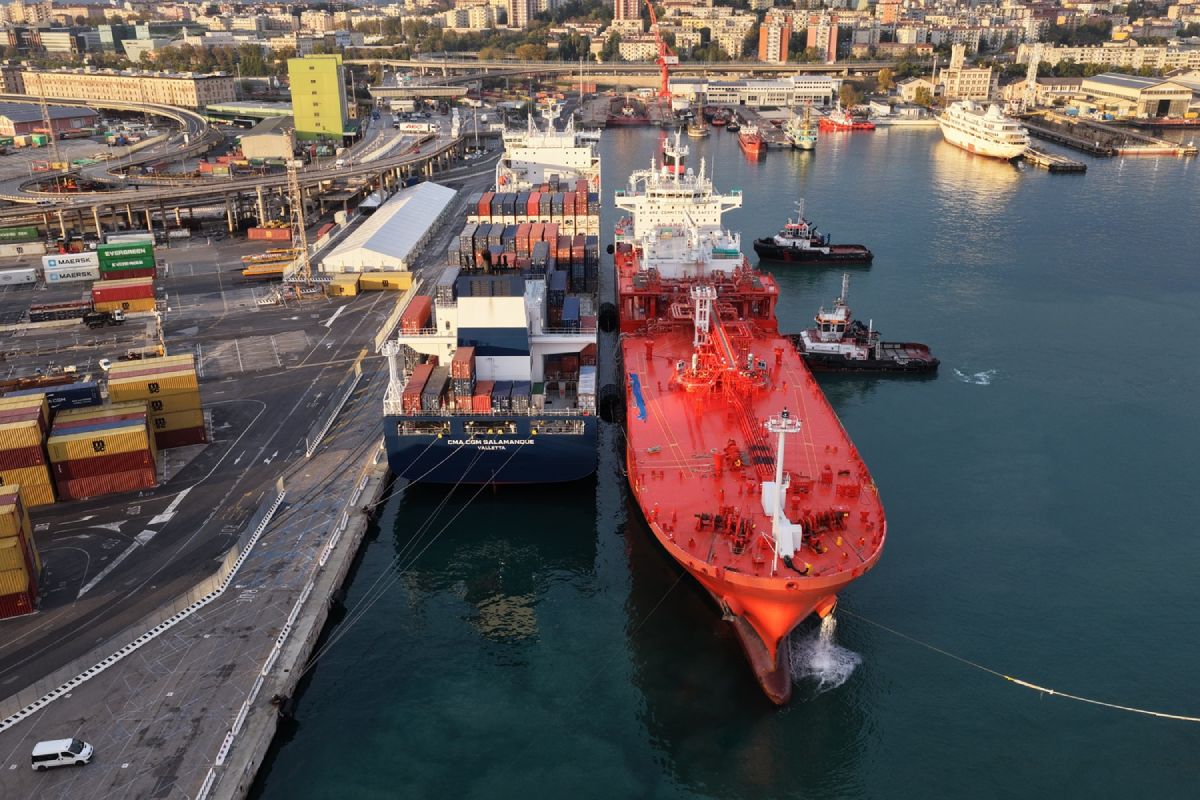 Edison e CMA CGM: realizzato a Trieste il primo bunkeraggio di GNL a una portacontainer in Italia