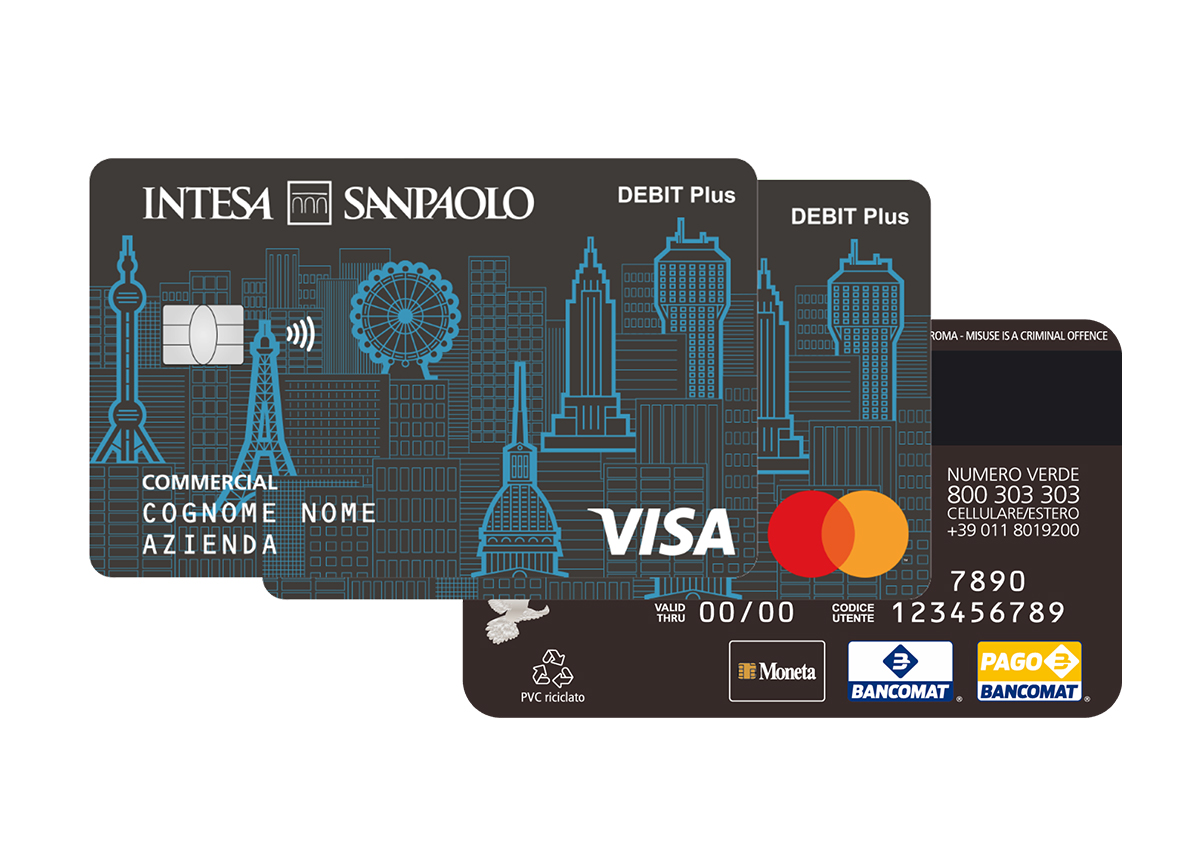 Valida per cinque anni, con limiti di spesa e funzionalità personalizzabili per garantire il controllo delle spese, la nuova Debit Plus di Intesa Sanpaolo consente di effettuare prelievi, bonifici, versamenti presso ATM e casse automatiche evolute. Il cliente sceglie se rendere visibile agli utilizzatori della carta la lista delle operazioni e il saldo del conto corrente aziendale e può verificare in qualsiasi momento i movimenti sul conto attraverso app e banca online. Debit Plus può essere utilizzata sia per i pagamenti nei negozi fisici, anche con tecnologia contactless, sia per gli acquisti online con conferma delle operazioni tramite PIN o riconoscimento biometrico.