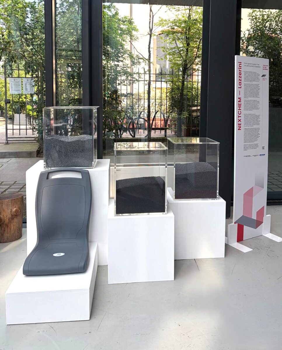 Al centro dell’esposizione, ospitata negli spazi di Stecca3 nel quartiere Isola, un sedile per il trasporto pubblico realizzato al 100% in plastica riciclata, sviluppato in collaborazione con Lazzerini. Un oggetto che rappresenta un esempio concreto di economia circolare applicata al design, dimostrando come i materiali post-consumo possano essere trasformati in soluzioni ad alte prestazioni, senza compromessi in termini di estetica, funzionalità e durata.