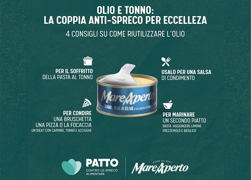 Date le caratteristiche anti-spreco del tonno in scatola, non è quindi un caso che Mare Aperto abbia scelto di aderire al “Patto contro lo Spreco Alimentare” promosso da Too Good To Go, l’utilissima applicazione che permette a bar, ristoranti, forni, pasticcerie, supermercati ed hotel di recuperare tramite la vendita online -ovviamente, a prezzi ribassati- il cibo invenduto ma “troppo buono per essere buttato”.