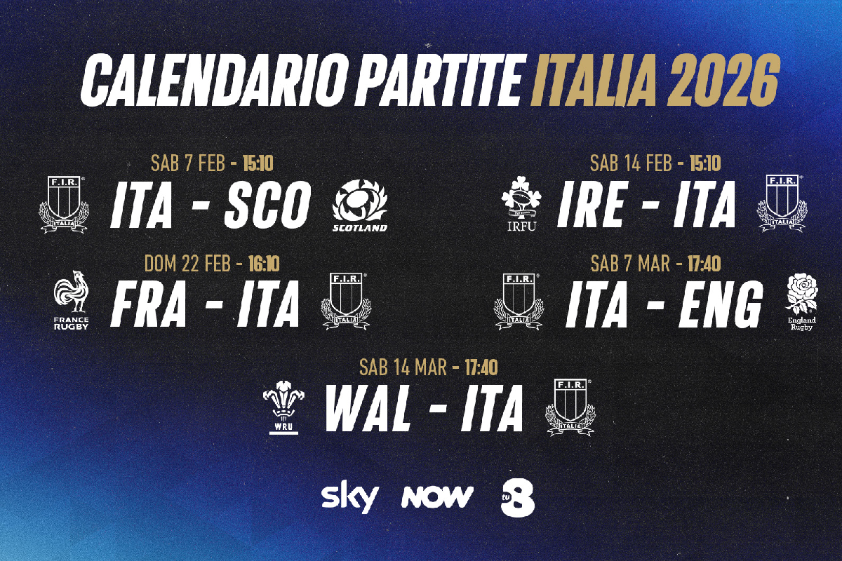 La competizione scatterà il 5 febbraio dallo Stade de France di Parigi, dove i campioni in carica della Francia affronteranno l’Irlanda nel match inaugurale. Tutti i 15 incontri del torneo saranno trasmessi in esclusiva live su Sky e in streaming su NOW, con un’attenzione particolare riservata agli Azzurri: le cinque gare dell’Italia, infatti, saranno visibili anche in chiaro su TV8. Il debutto della squadra guidata dal capitano Michele Lamaro è fissato per il 7 febbraio allo Stadio Olimpico di Roma contro la Scozia, una sfida che assegnerà anche la Cuttitta Cup.