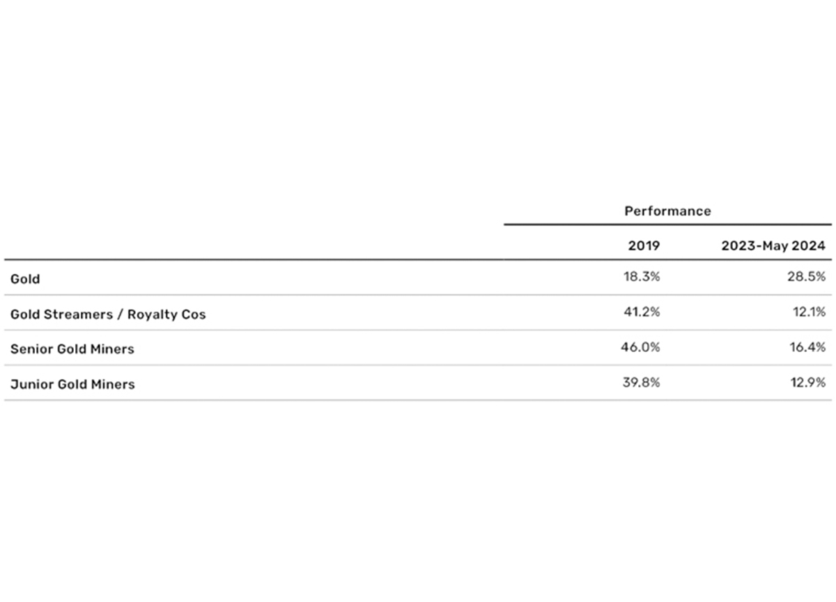 Il valore dei titoli minerari auriferi aumenta (quasi) sempre quando il prezzo dell’oro sale. E questi titoli potrebbero sovraperformare quando gli acquirenti occidentali tornano a interessarsene. Storicamente, questo avviene quando il taglio dei tassi d’interesse è imminente, non quando viene costantemente rimandato. In alternativa, una “corsa all’oro” potrebbe essere provocata da un catalizzatore di altro tipo, ad esempio un’escalation del conflitto mediorientale o una svalutazione dello yuan cinese.