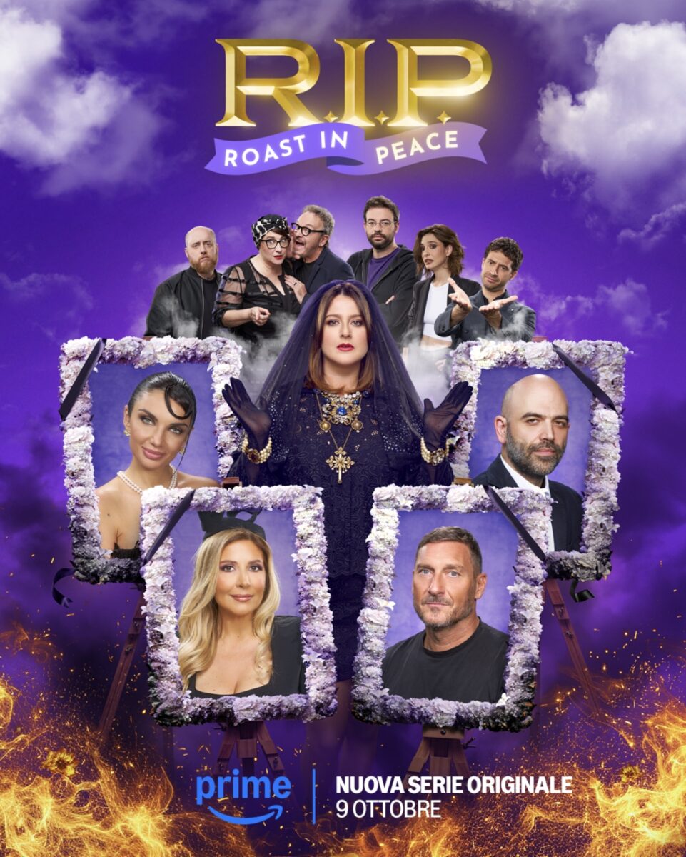 Prime Video svela il trailer, il poster e la data di uscita di Roast in Peace, il nuovo attesissimo comedy show con il funerale più spietato e divertente mai visto prima, disponibile in esclusiva su Prime Video dal 9 ottobre in 5 episodi. Quattro celebrità “defunte” e sei comici pronti a commemorarle a modo loro. L’obiettivo è uno: individuare il comico più cattivo, quello che non si ferma neanche di fronte alla morte. Stefano Rapone, Edoardo Ferrario, Beatrice Arnera, Eleazaro Rossi, Corrado Nuzzo e Maria Di Biase sono pronti ad “onorare” la memoria di Selvaggia Lucarelli, Roberto Saviano, Elettra Lamborghini e Francesco Totti.