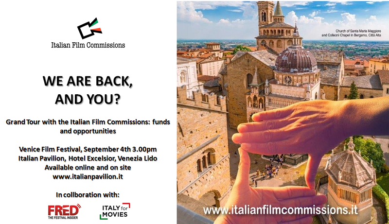 Domani, Roma Lazio Film Commission parteciperà alla conferenza di Ifc coordinamento delle Film Commission italiane “We are back, and you? Grand Tour with the Italian Film Commissions: funds and opportunities”. Nell’ occasione le Film Commission italiane presenteranno le opportunità e i fondi disponibili sui territori regionali agli operatori internazionali, nel quadro della riapertura dei set e delle riprese. La presentazione è realizzata in collaborazione con Fred – The Festival Insider, web radio del cinema e dei festival cinematografici, e Italy for Movies, il portale dei fondi e delle location italiane realizzato dalle DG Cinema e Turismo del Mibact, gestito da Istituto Luce-Cinecittà in collaborazione con Ifc Italian Film Commissions. La presentazione sarà in diretta streaming e disponibile sul sito https://italianpavilion.it/ , padiglione virtuale creato per l’occasione per permettere di seguire le attività on-line.
