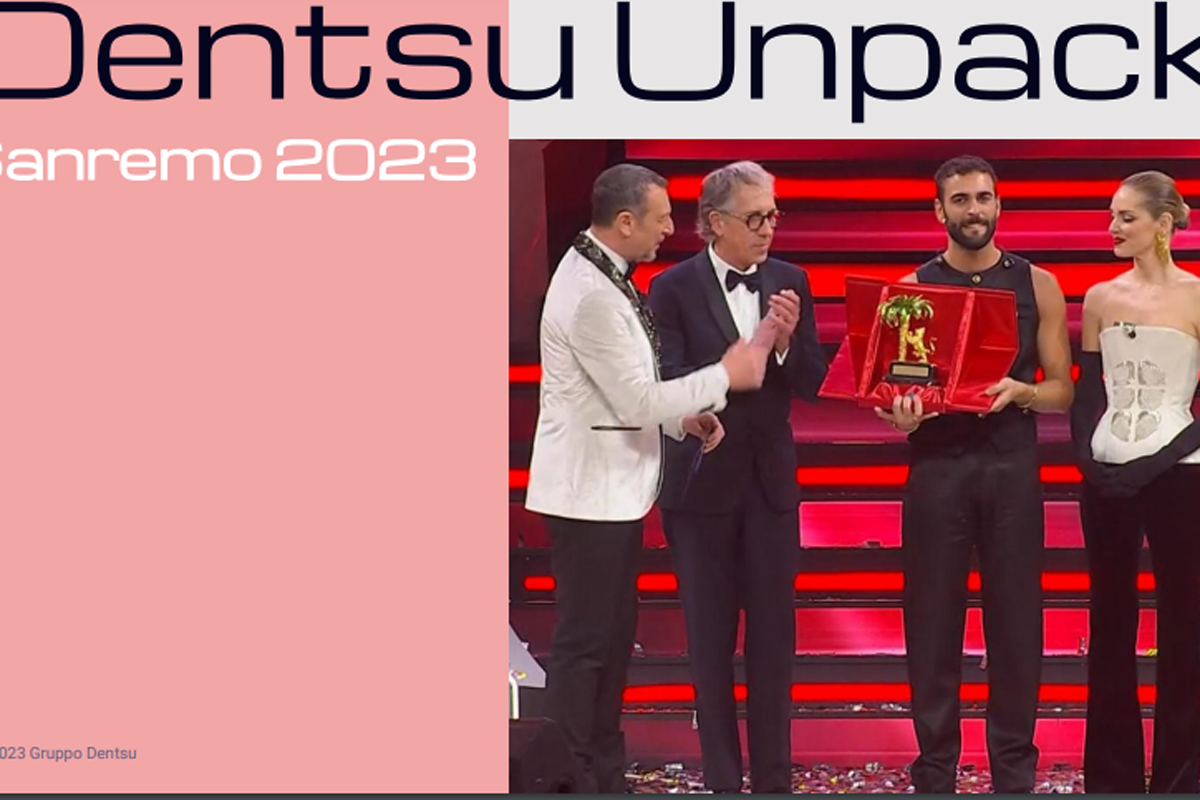 Dentsu presenta “Dentsu Unpacked – Sanremo 2023”, il White Paper realizzato internamente da un team multidisciplinare che mette insieme le varie anime creative, media e strategiche del Gruppo, per un’analisi approfondita del 73° Festival di Sanremo e di tutte le sue implicazioni per il marketing e la comunicazione dei brand italiani.