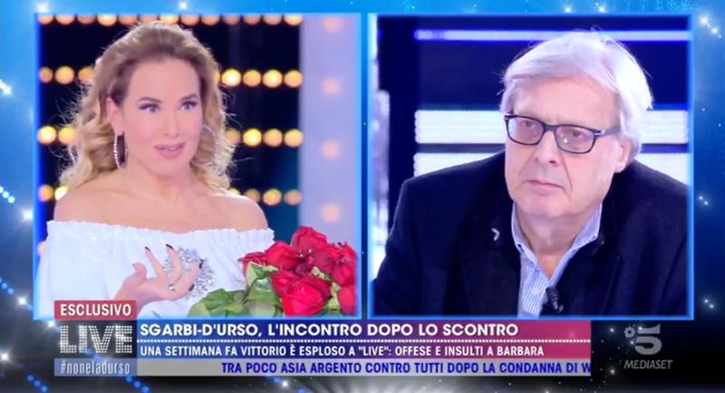 Vittorio Sgarbi chiede scusa a Barbara d’Urso con un mazzo di rose