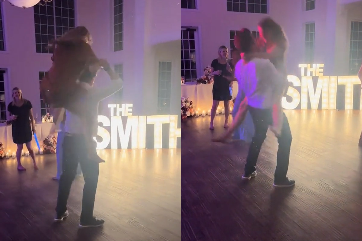 Protagonista dell’incidente, diventato virale sui social con oltre 34 milioni di visualizzazioni, è Hannah Buresh, 25 anni. La coppia stava cercando di animare il ricevimento improvvisando una coreografia acrobatica davanti agli invitati. Quando è arrivato il momento della presa più iconica del cinema, però, qualcosa è andato storto.