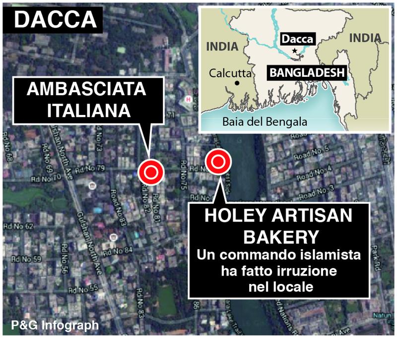 Un tribunale speciale di Dacca ha condannato a morte sette militanti per l'attacco terroristico dell'1 luglio 2016 al ristorante Holy Ortizan Bakery nella capitale del Bangladesh, in cui morirono 22 persone, tra cui 17 stranieri, 9 dei quali italiani. Lo riferisce la Bbc.