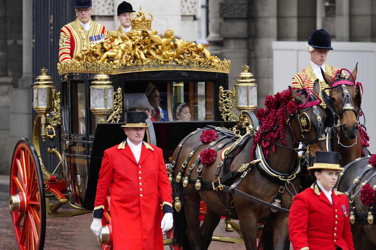 Il nuovo sovrano lascia l'abbazia dopo l'incoronazione. La lunga processione di tutta la Royal family