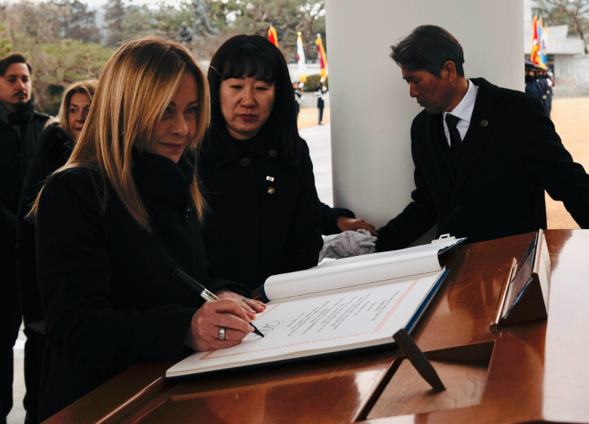 Meloni in Corea del Sud (Foto Lapresse)