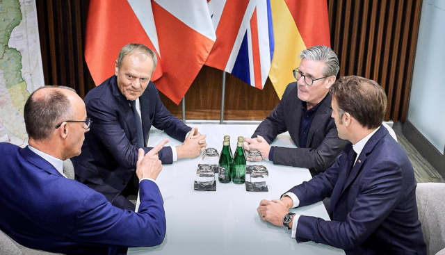 Il presidente francese Emmanuel Macron, insieme al premier britannico Keir Starmer, al cancelliere tedesco Friedrich Merz e al premier polacco Donald Tusk sono a Kiev. È la prima volta che i leader dei quattro Paesi europei effettuano una visita congiunta in Ucraina. L'iniziativa arriva all'indomani della parata della vittoria a Mosca che celebra gli 80 anni dalla sconfitta del nazismo nella Seconda Guerra Mondiale.