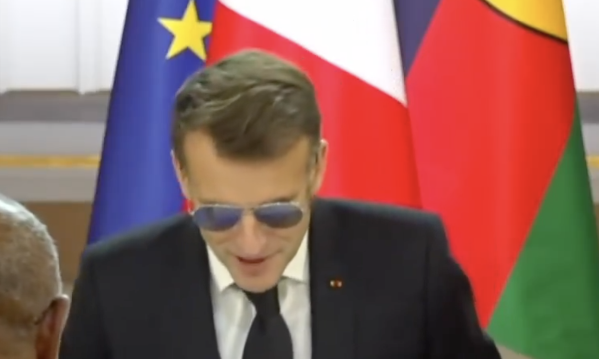 Macron, che stile. Il presidente francese si presenta con gli occhiali da sole in conferenza stampa. VIDEO