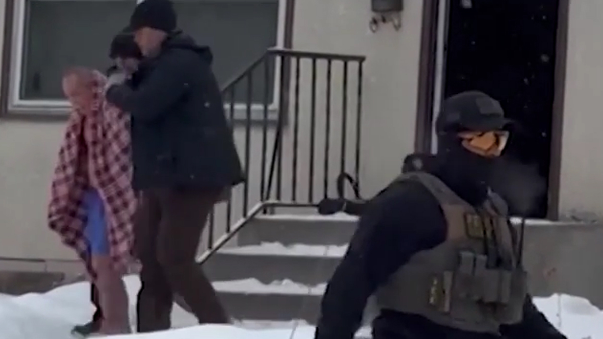 Agenti armati irrompono senza mandato e lo lasciano in strada a temperature sotto zero. Video virale