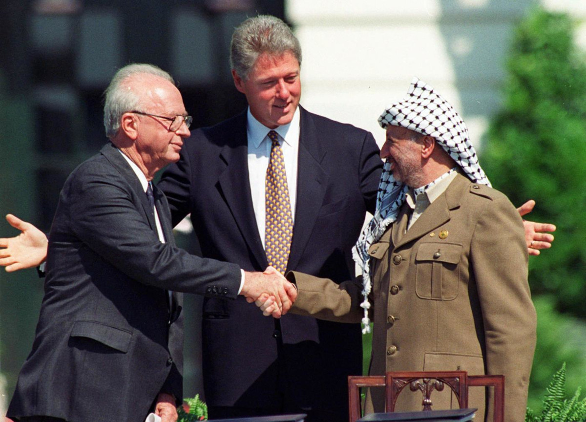 Rabin, Clinton, Arafat: accordi di Oslo del 1993 (Foto Lapresse)