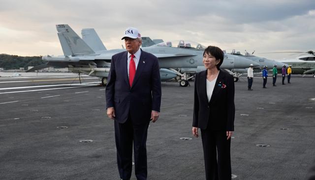 In visita alla base navale di Yokosuka, in Giappone, il presidente statunitense Donald Trump ha condiviso il palco con la nuova premier giapponese Sanae Takaichi, che aveva incontrato in un bilaterale poche ore prima a Tokyo. "Questa donna è una vincente. Ho un enorme rispetto per la nuova e incredibile prima ministra", ha dichiarato Trump, sottolineando il carattere storico della sua elezione come prima donna a guidare il Giappone.