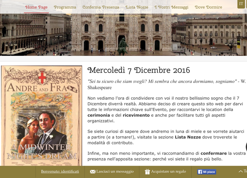 Come hanno fatto Francesca e Andrea che annunciano le nozze fissate il 7 dicembre sul sito andreandfra.com