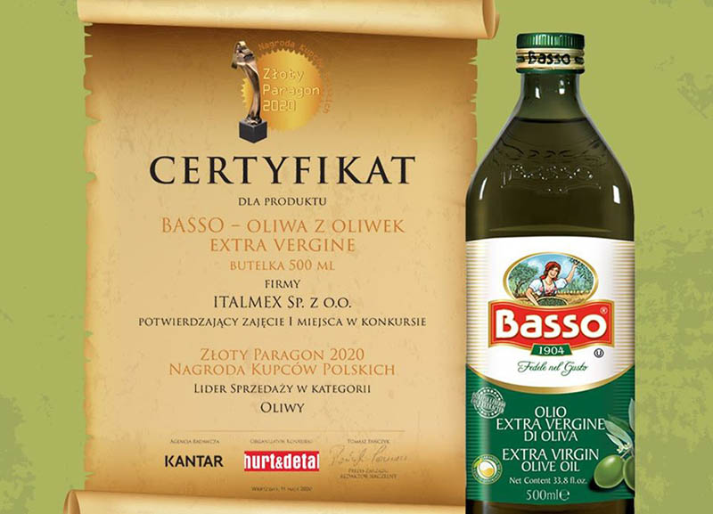 Un importante riconoscimento quello ottenuto dall’azienda irpina Olio Basso che sale sul podio più alto del concorso “Golden Receipt 2020-Polish Merchants Award” aggiudicandosi la decima edizione del premio per la categoria “Olio #Evo” per il mercato della Polonia. Un ulteriore tassello per l'azienda nata nel 1904, un nuovo riconoscimento internazionale, l’ennesima conferma della qualità produttiva dell’oleificio irpino che con il primo posto ottiene il prestigioso “Złot y Paragon”, ovvero lo Scontrino d'oro.