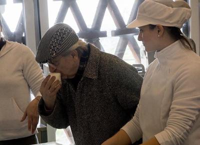 Gualtiero Marchesi degusta la mozzarella sotto lo sguardo attento di Francesca