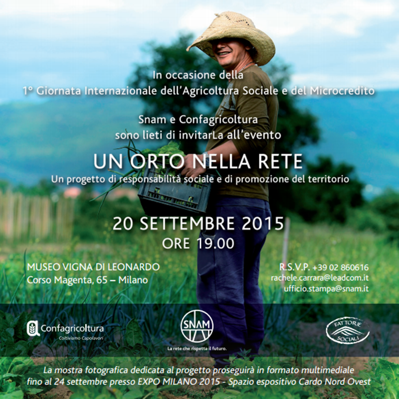 Con una mostra del fotografo e paesaggista Christian Sinibaldi (collaboratore del The Guardian e vincitore di numerosi premi), si inaugura domenica 20 settembre alla Vigna di Leonardo di Milano “Un Orto nella Rete” il progetto di sostenibilità e agricoltura sociale realizzato da Snam in collaborazione con Confagricoltura. Sinibaldi documenta nello stile del reportage l’attività sociale svolta da Snam a Terranuova Bracciolini (AR) dove ha affidato alla cooperativa Betadue in comodato d’uso un’area confinante con il proprio impianto di compressione del gas naturale.