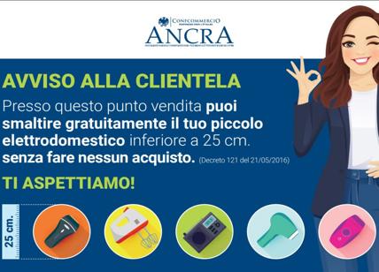 Smaltire un piccolo elettrodomestico (inferiore a 25 cm) gratuitamente e senza dover fare nessun acquisto. È l’iniziativa "green" promossa da Ancra con la collaborazione di Assomultimedia (le associazioni Confcommercio di settore nell’elettronica di consumo).