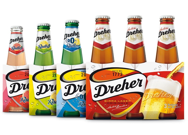 Che dire, ci ha preso gusto. Un cambio importante che interessa tutta la famiglia di prodotti Dreher, non solo nella forma della bottiglia ma anche nell’immagine di tutti i formati di packaging.