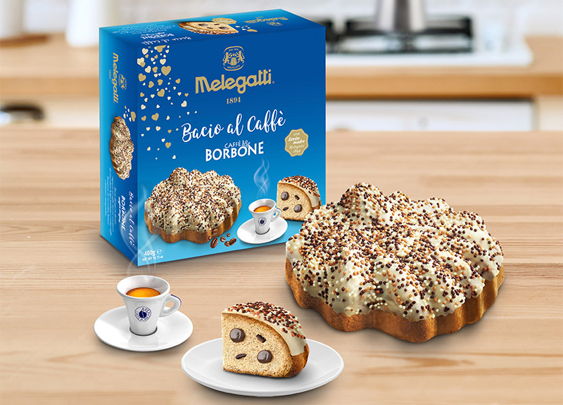 Il Bacio al Caffè è il nuovo dolce della Melegatti impreziosito con il Caffè Borbone, una bontà che regala un’esperienza gustativa unica e che gli italiani troveranno nei supermercati tutto l’anno, ideale come dessert e per le occasioni speciali come la festa dei papà, San Giuseppe e della mamma.