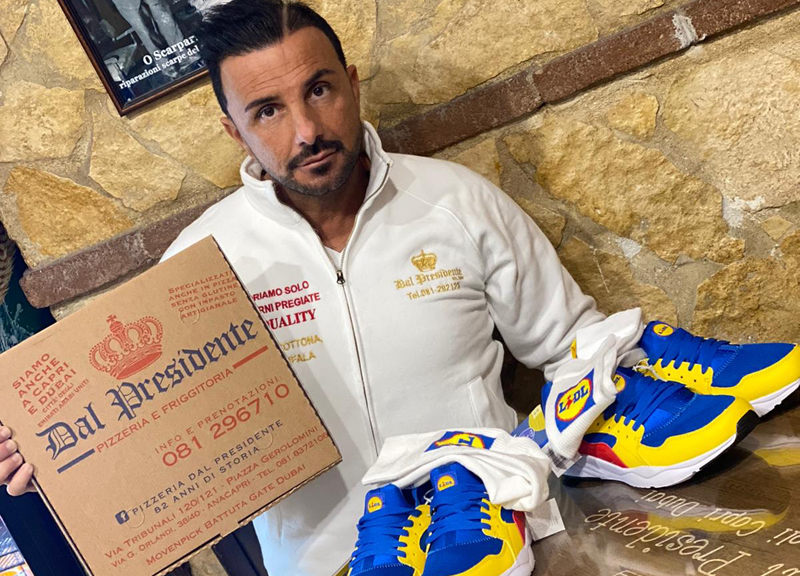 È nel momento di difficoltà che viene fuori la genialità del popolo napoletano. Cavalcando l’onda dello scalpore che ha suscitato la corsa all’acquisto -e il reselling a prezzi esorbitanti- delle scarpe della Lidl, Massimo Di Caprio, titolare della pizzeria “Dal Presidente” nella stessa via delle pizze, proprio perchè in quella stessa strada si trovano anche altre pizzerie rinomate, ha pensato di regalarne un paio ai propri clienti.