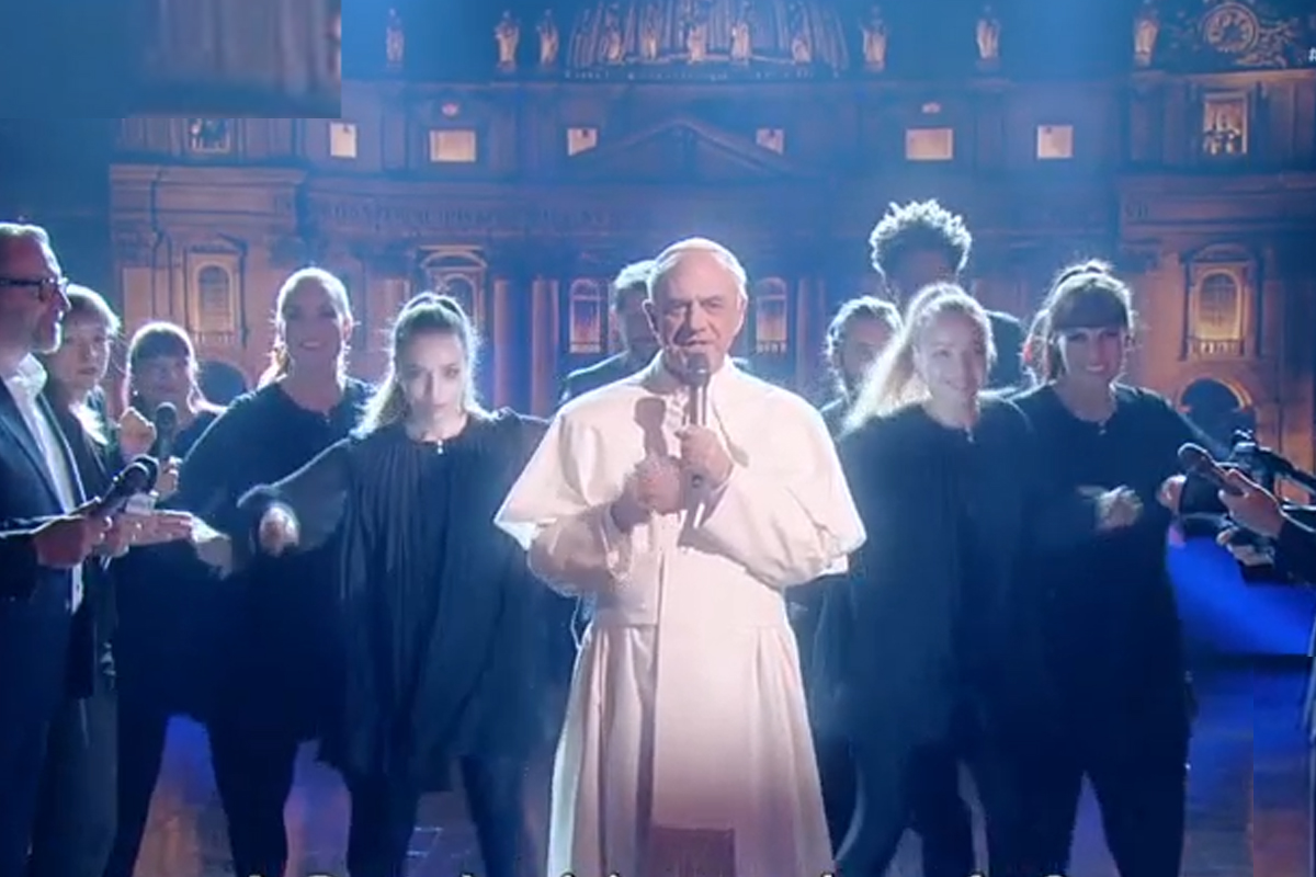 Nella prima puntata della nuova stagione di Fratelli di Crozza, in onda il venerdì sera in prima serata sul Nove e in streaming su Discovery+, Maurizio Crozza torna nelle vesti di Papa Leone XIV che tenta di fermare i conflitti cantando.