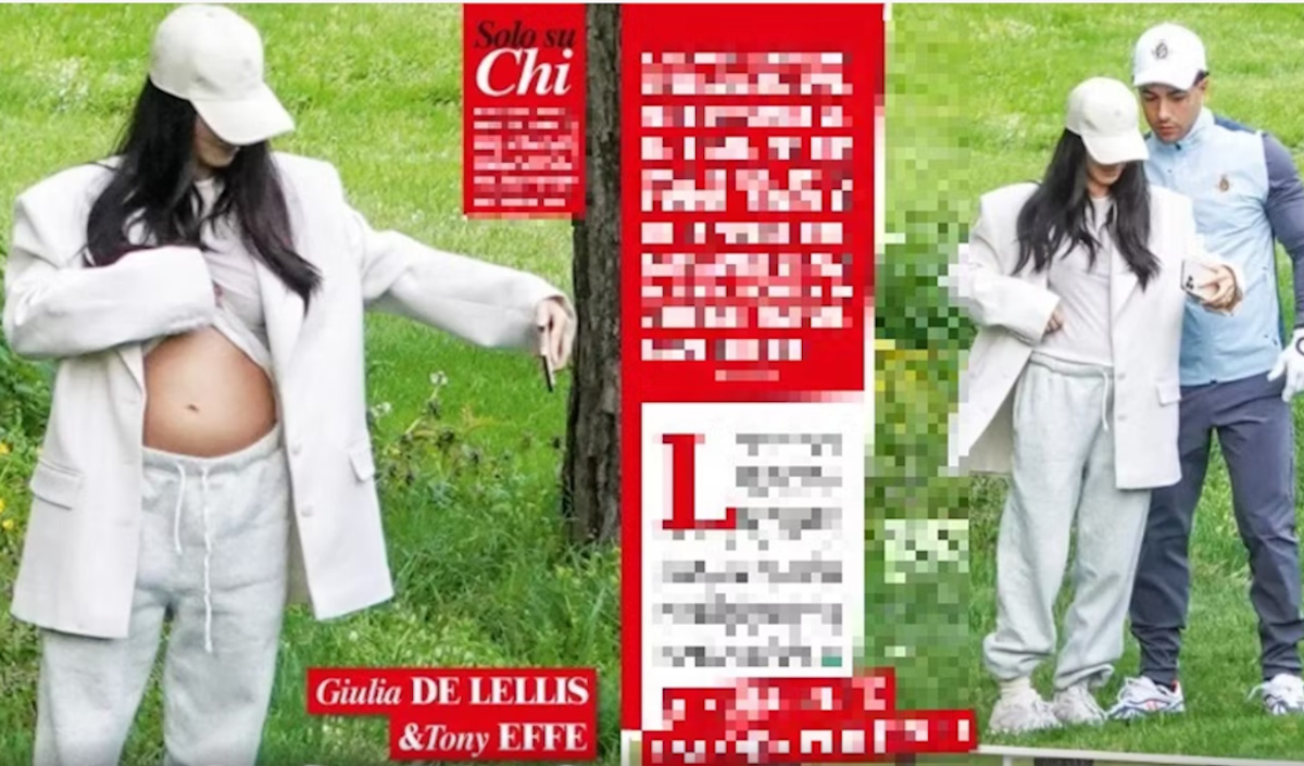 Nelle immagini scattate da "Chi" a Villa D'Este, sul lago di Como, si vede Giulia De Lellis sollevare la maglietta per immortalare il suo pancino mentre Tony Effe è nelle vicinanze a giocare a golf. La coppia aveva già trascorso le vacanze di Pasqua insieme ma in totale riservatezza. La nascita del piccolo è prevista per l'autunno.