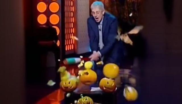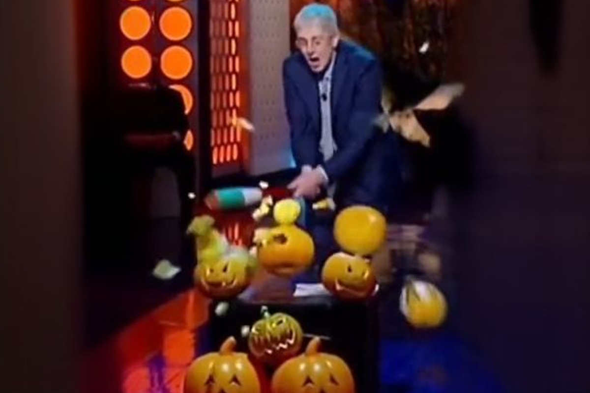 Halloween, Mario Giordano va su tutte le furie e spacca le zucche in studio con una mazza da baseball. Il video esilarante
