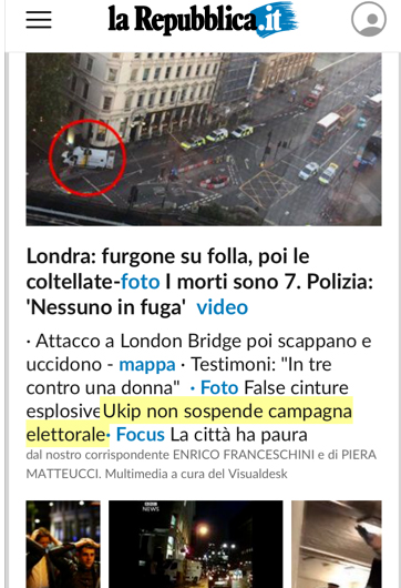 In un titolo di repubblica.it (“furgone su folla”: quindi il furgone ha deciso da solo di muoversi?), la dinamica mentale e culturale dell’establishment mediatico e istituzionale.