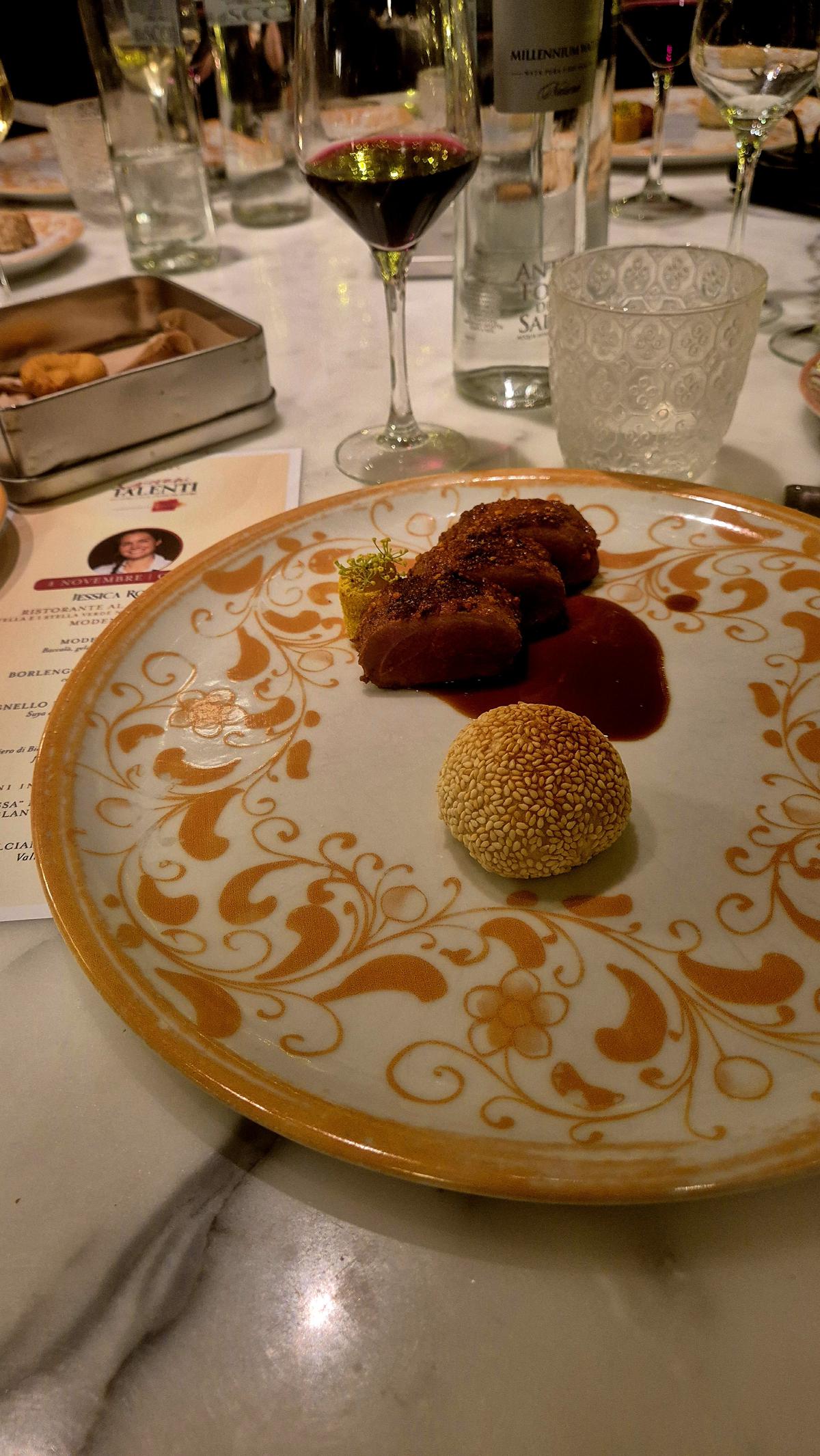 “Modena Pil Pil”, un incontro tra baccalà, gelatina di cotechino e porro, che unisce mare e terra in un equilibrio sorprendente di texture e intensità