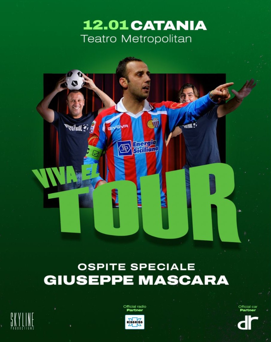 Dopo il successo delle prime due tappe di Napoli e Torino, Viva El Futbol arriva a Catania con Viva El Tour, il progetto live prodotto da Urban Vision Group che trasforma uno dei talk sportivi più seguiti del web in uno spettacolo teatrale dal vivo.