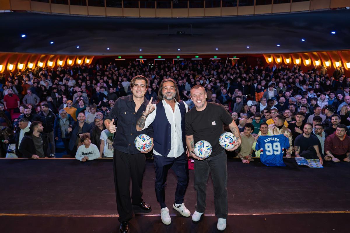 Sul palco Lele Adani, Antonio Cassano e Nicola Ventola, affiancati da Corrado Tedeschi, danno vita a uno spettacolo che supera i confini del podcast tradizionale e si apre a una dimensione teatrale autentica, ironica e coinvolgente.