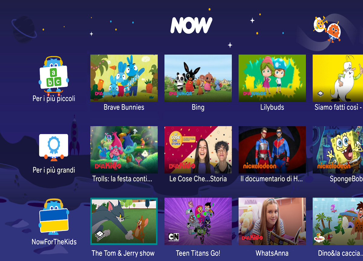 Al via oggi NowForTheKids, l’iniziativa di Sky che, attraverso il suo servizio in streaming NOW, vuole offrire momenti di svago ai bambini ucraini rifugiati, a seguito della drammatica crisi umanitaria. I bambini ospitati in Italia potranno così vedere cartoni animati e serie per ragazzi sottotitolati o doppiati nella loro lingua madre con un catalogo destinato ad arricchirsi nelle prossime settimane.