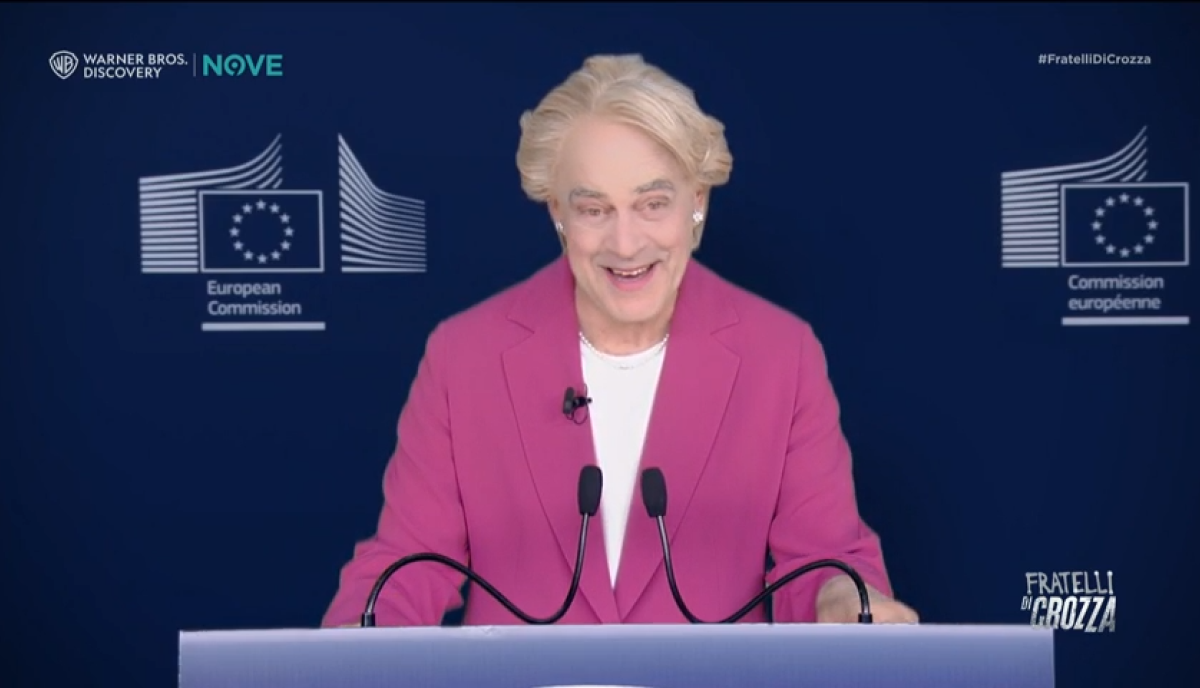 Nella nuova puntata di Fratelli di Crozza, in onda il venerdì sera in prima serata sul Nove e in streaming su Discovery+, Maurizio Crozza è Ursula Von der Leyen che non trattiene le risate per la borsa della resilienza.