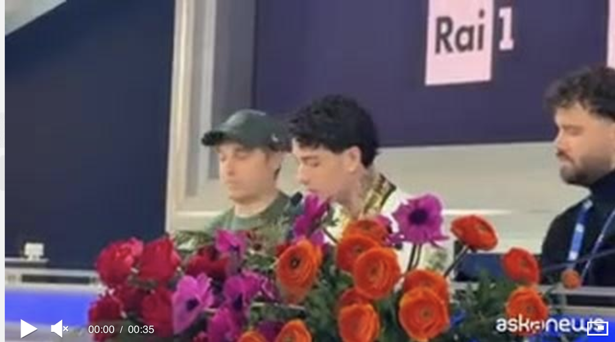 Tony Effe durante una conferenza stampa prima della finale