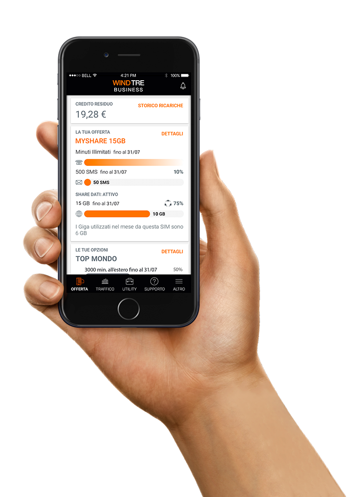 La nuova App Wind Tre Business, disponibile su App Store e Google Play Store, è un canale per il selfcare efficace, intuitivo e gratuito, che consente di tenere sempre sotto controllo il proprio business, sia in Italia sia all’estero, senza utilizzare, sul territorio nazionale, il traffico dati previsto dalla propria offerta. Con la nuova applicazione, è possibile monitorare l’offerta sottoscritta, i relativi consumi e la copertura di rete, conoscere i servizi disponibili per i viaggi internazionali, chiedere assistenza direttamente al servizio clienti e rimanere sempre aggiornati sulle ultime novità di Wind Tre Business. In particolare, la nuova App permette di consultare i dettagli relativi allo sharing del traffico dati per chi ha attivato ‘GigaShare’, l’offerta di Wind Tre Business che mette a disposizione fino 100 Giga di traffico dati su smartphone e tablet, da condividere con colleghi e collaboratori.