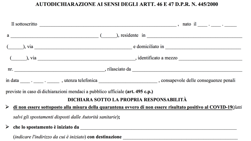 CLICCA QUI PER SCARICARE L’AUTOCERTIFICAZIONE COVID-19 IN FORMATO PDF