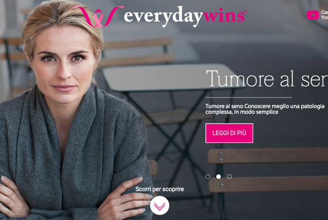 Ipsen S.p.A. in collaborazione con Europa Donna Italia ha lanciato la versione italiana del sito web EverydayWins, il nuovo portale online che ha l’obiettivo di fornire alle donne affette da tumore al seno informazioni sulla malattia e consigli utili per affrontare la quotidianità